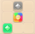 到了第5档,增加了3个纯色的点,难度增加了一些,此时之前的摆放可能需要动一动了,如上图,我换了几个方位的形状,并加了两个彩孔,激活了第5档。这里要额外说明一点,每次退出布阵模式时,星盘内的布置将临时保存,很方便,但这次保存是临时的,